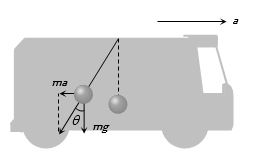 $ \Rightarrow \theta = {\tan ^{ - 1}}\left( {\frac{a}{g}} \right)$ in the backward direction.