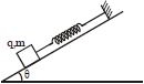 A small block of mass $m$, having charge $q$ is placed on frictionless inclined plane making an angle $\theta$ with the horizontal. There exists a uniform magnetic field $B$ parallel to the inclined plane but perpendicular to the length of spring. If $m$ is slightly pulled on the inclined in downward direction and released, the time period of oscillation will be (assume that the block does not leave contact with the plane)