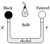 The following figure shows two air-filled bulbs connected by a $ U-$ tube partly filled with alcohol. What happens to the levels of alcohol in the limbs $X$ and $Y$ when an electric bulb placed midway between the bulbs is lighted