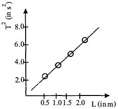 In an experiment for determining the gravitational acceleration $g$ of a place with the help of a simple pendulum, the measured time period square is plotted against the string length of the pendulum in the figure. What is the value of $g$ at the place? ...... $m/s^2$