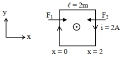 $\mathrm{~F}=\mathrm{F}_2-\mathrm{F}_1=8 \mathrm{i} \ell \mathrm{B}_0=8 \times 2 \times 2 \times 5$
