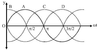 $\therefore {\phi _0} = \frac{{4\pi }}{3}.$ Hence ${y_2} = a\,\cos \left( {\omega t + kx + \frac{{4\pi }}{3}} \right)$