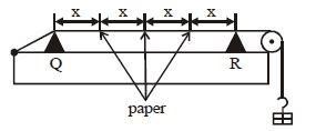 The given diagram shows three light pieces of paper placed on a wire that is stretched over two supports, $Q$ and $R$ , a distance $4x$ apart. When the wire is made to vibrate at a particular frequency, all the pieces of paper, except the middle one, fall off the wire. Which of the following could be the wavelength of the vibration?