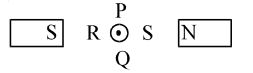 A straight current carrying conductor is placed in such a way that the current in the conductor flows in the direction out of the plane of the paper. The conductor is placed between two poles of two magnets, as shown. The conductor will experience a force in the direction towards