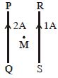 $PQ$ and $RS$ are long parallel conductors separated by certain distance. $M$ is the mid-point between them (see the figure). The net magnetic field at $M$ is $B$ . Now, the current $2\,A$ is switched off. The field at $M$ now becomes