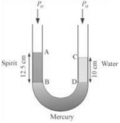 Difference between the pressures exerted by water and spirit: