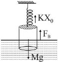 A uniform cylinder of length $L$ and mass $M$ having crosssectional area $A$ is suspended, with its length vertical, from a fixed point by a massless spring such that it is half submerged in a liquid of density $\sigma$ at equilibrium position. The extension $x_0$ of the spring when it is in equilibrium is