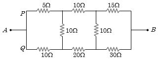 Let the resistance of the shorter part $\mathrm{MN}$ be $\mathrm{x}$. Total resistance is $20 \,\Omega .$ Hence, the resistance of longer $\mathrm{MN}$ part will be $(20-x)$. With respect to $\mathrm{M}$ and $\mathrm{N},$ the two portions are connected in parallel. Hence,