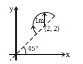 A uniform magnetic field $\vec B = \left( {3\hat i + 4\hat j + \hat k} \right)$ exists in region of space. A semicircular wire of radius $1\,m$ carrying current $1\,A$ having its centre at $(2, 2, 0)$ is placed in $x-y$ plane as shown in figure. The force on semicircular wire will be