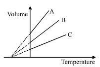 The expansion of an ideal gas of mass $m$ at a constant pressure $P$ is given by the straight line $B$. Then the expansion of the same ideal gas of mass $2 \,\,m$ at a pressure $2P$ is given by the straight line