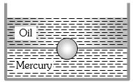A vessel contains oil (density =$ 0.8 \;gm/cm^3$) over mercury (density = $13.6\; gm/cm^3$). A homogeneous sphere floats with half of its volume immersed in mercury and the other half in oil. The density of the material of the sphere in $ gm/cm^3$ is