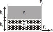 A wide vessel with a small hole at the bottom is filled with two liquids. The density and heightof one liquid are $\rho_1$ and $h_1$ and that of the otherare $\rho_2$ and $h_2 \ (\rho_1 >\rho_2)$. The velocity of liquid coming out of the hole is :