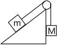 A wire of $10^{-2} kgm^{-1}$ passes over a frictionless light pulley fixed on the top of a frictionless inclined plane which makes an angle of $30^o$ with the horizontal. Masses $m$ and $M$ are tied at two ends of wire such that m rests on the plane and $M$ hangs freely vertically downwards. The entire system is in equilibrium and a transverse wave propagates along the wire with a velocity of $100 ms^{^{-1}}$.