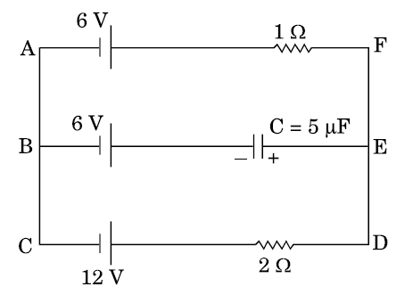 In the given circuit, with steady current, calculate the potential difference across the capacitor and the charge stored in it.