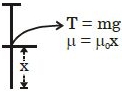 $\mathrm{v}=\sqrt{\frac{\mathrm{T}}{\mu}}=\sqrt{\frac{\mu_{0} \mathrm{x}^{2} \mathrm{g}}{2. \mu_{0} \mathrm{x}}}$