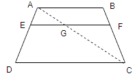 ABCD एक समलंब है जिसमें AB || DC है। असमांतर भुजाओं AD और BC पर क्रमशः बिंदु E और F इस प्रकार स्थित हैं कि EF भुजा AB के समांतर है (आकृति देखिए)। दर्शाइए कि$\frac{AE}{ED} = \frac {BF}{FC}$ है।