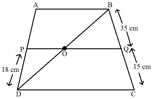 ABCD is a trapezium in which AB || DC and P and Q are points on AD and BC, respectively such that PQ || DC. If PD = 18cm, BQ = 35cm and QC = 15cm, find AD.