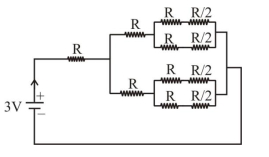 All resistances in figure are $1\,\Omega$ each. The value of current ' $I$ ' is $\frac{a}{5}\,A$. The value of $a$ is