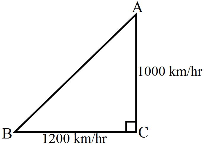 An aeroplane leaves an airport and flies due north at a speed of $1000\ km$ per hour. At the same time, aeroplane leaves the same airport and flies due west at a speed of $1200\ km$ per hour. How far apart will be the two planes after $1\frac{1}{2}\text{hour}?$