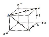 In figure the cube is of $40\,\, cm$ edge. Four straight segment of wire $ab, bc, cd$ and $da$ form a closed loop that carries a current $I = 5\,A$. A uniform magnetic field $0.02\,\,T$ is in $+y\,-$ direction ratio of magnetic force on segement $ab$ and $bc$ is