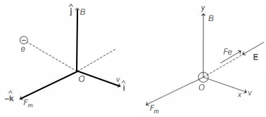 To avoid deflection of electron, electric field must be applied normal to the plane of paper ($XOY$-plane in diagrams) and pointing outward.