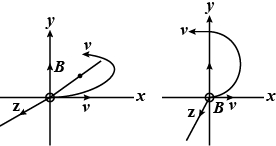 $B$ along $z$ $- axis:$ circle in $x y$ plane, at some point particle will be moving along