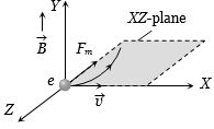 i.e. Force on electron is acting towards negative $z$-axis. Hence particle will move on a circle in $xz$-plane.