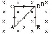 A square of side $2.0\,m$ is placed in a uniform magnetic field $B = 2.0\, T$ in a direction perpendicular to the plane of the square inwards. Equal current, $i = 3.0\, A$ is flowing in the direction shown in figure. Find the magnitude of magnetic force on the loop