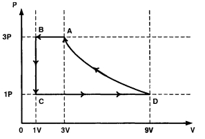 $(D)$ If $V_2=3 V_1$ and $T_2=4 T_1$, then the heat supplied to the gas is $\frac{17}{6} P_1 V_1$