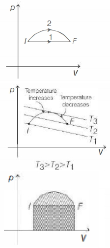 - Now, consider isotherms over $p-V$ graph given, we clearly see that for path $2$ temperature increases and then decreases. So, option $(c)$ is correct.