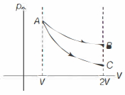 Work done $=$ Area under $p \cdot V$ graph So, $\quad W_{A B} > W_{A C}$ Also, gas expands, so work done is positive.