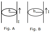 Figure $A$ and $B$ shown two long straight wires of circular cross-section ($a$ and $b$ with $a$ $<$ $b$), carrying current $I$ which is uniformly distributed across the cross-section. The magnitude of magnetic field $B$ varies with radius $r$ and can be represented as