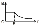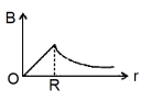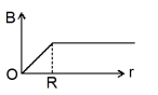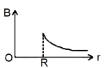 An infinitely long hollow conducting cylinder with radius $R$ carries a uniform current along its surface. Choose the correct representation of magnetic field $(B)$ as a function of radial distance $(r)$ from the axis of cylinder