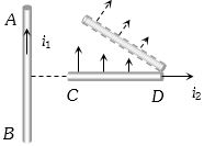 An infinitely long, straight conductor $AB$ is fixed and a current is passed through it. Another movable straight wire $CD$ of finite length and carrying current is held perpendicular to it and released. Neglect weight of the wire