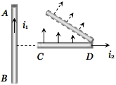 c since the force on the rod $\mathrm{CD}$ is non-uniform it will experience force and torque. From the left hand side it can be seen that the force will be upward and torque is clockwise.