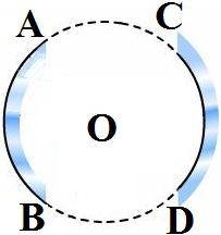AB and CD, two spherical mirrors, form parts of a hollow spherical ball with its centre at O as shown in the diagram. If arc $\text{AB}=\frac{1}{2}$ arc CD, what is the ratio of their focal lengths? State which of the two mirrors will always form virtual image of an object placed in front of it and why.