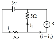 $\therefore \text { Current through voltmeter }=i-i_1$