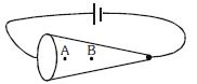 Suppose a current carrying wire has a cross-sectional area that, gradually become smaller along the wire, has the shape of a very long cone as shown in figure. Choose the correct statement