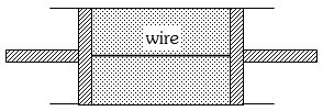 A cylindrical tube of uniform cross-sectional area $A$ is fitted with two air tight frictionless pistons. The pistons are connected to each other by a metallic wire. Initially the pressure of the gas is $P_0$ and temperature is $T_0$, atmospheric pressure is also $P_0$. Now the temperature of the gas is increased to $2T_0$, the tension in the wire will be