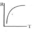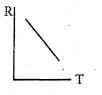 Assume a hypothetical wire in which free electron density changes with temperature in proportionality $n\ \alpha \ T$ assuming $\tau $(Relaxation time of collision) and dimensions of wire remain unchanged with increasing temperature. Which one of the resistance $v/s$ temperature graph is true