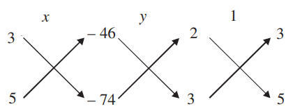 तब $\frac{x}{(3)(-74)-(5)(-46)}$ = $\frac{y}{(-46)(3)-(-74)(2)}$ = $\frac{1}{(2)(5)-(3)(3)}$
