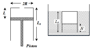 $(C)$ $\left(\frac{\mathrm{P}_0 \pi \mathrm{R}^2+\mathrm{Mg}}{\pi \mathrm{R}^2 \mathrm{P}_0}\right)(2 \mathrm{~L})$ $(D)$ $\left(\frac{\mathrm{P}_0 \pi \mathrm{R}^2}{\pi \mathrm{R}^2 \mathrm{P}_0-\mathrm{Mg}}\right)(2 \mathrm{~L})$