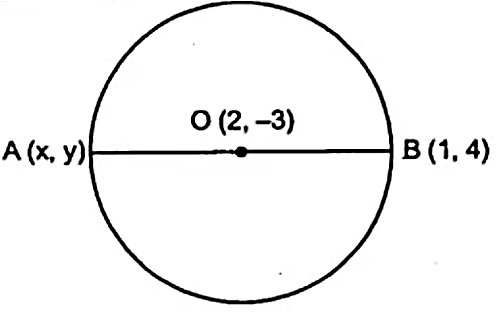 माना वृत्त के व्यास के अंतः बिन्दु A(x, y) और B(1, 4) हैं।