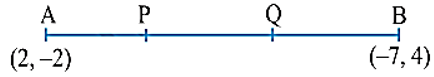 अतः, बिंदुओं A और B को जोड़ने वाले रेखाखंड को सम-त्रिभाजित करने वाले बिंदुओं के निर्देशांक (-1, 0) और (-4, 2) हैं।