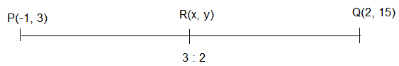 मान लें कि R (x, y) वह बिंदु है जो बिंदु P (-1, 3) और Q (2, 5) को मिलाने वाले रेखाखंड को विभाजित करता है। अनुपात 3:2