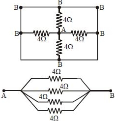 A meter bridge set up as shown to determine end correction at $A$ and $B$ . When a resistance of $15\,\Omega $ is used in left gap and of $20\,\Omega $ in right gap, then null point comes at a distance $42\ cm$ from $A$ . When these resistances are interchanged null point comes at a distance $57\ cm$ from $A$ . Values of end corrections are