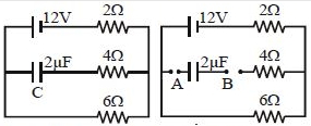 $\mathrm{q}=\mathrm{C}\left(\mathrm{V}_{\mathrm{A}}-\mathrm{V}_{\mathrm{B}}\right)$