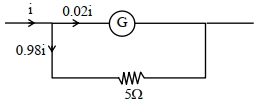 Consider a galvanometer shunted with $5\, \Omega$ resistance and $2\, \%$ of current passes through it.
