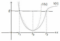 Given, potential energy curve closely represents potential energy of a simple harmonic oscillator $\left(U=\frac{1}{2} k x^2\right.$, shown in dotted line $)$