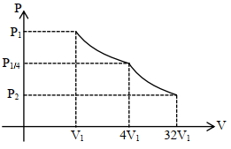 $P _2=\frac{ P _1}{4}\left(\frac{1}{8}\right)^{5 / 3}=\frac{ P _1}{128}$